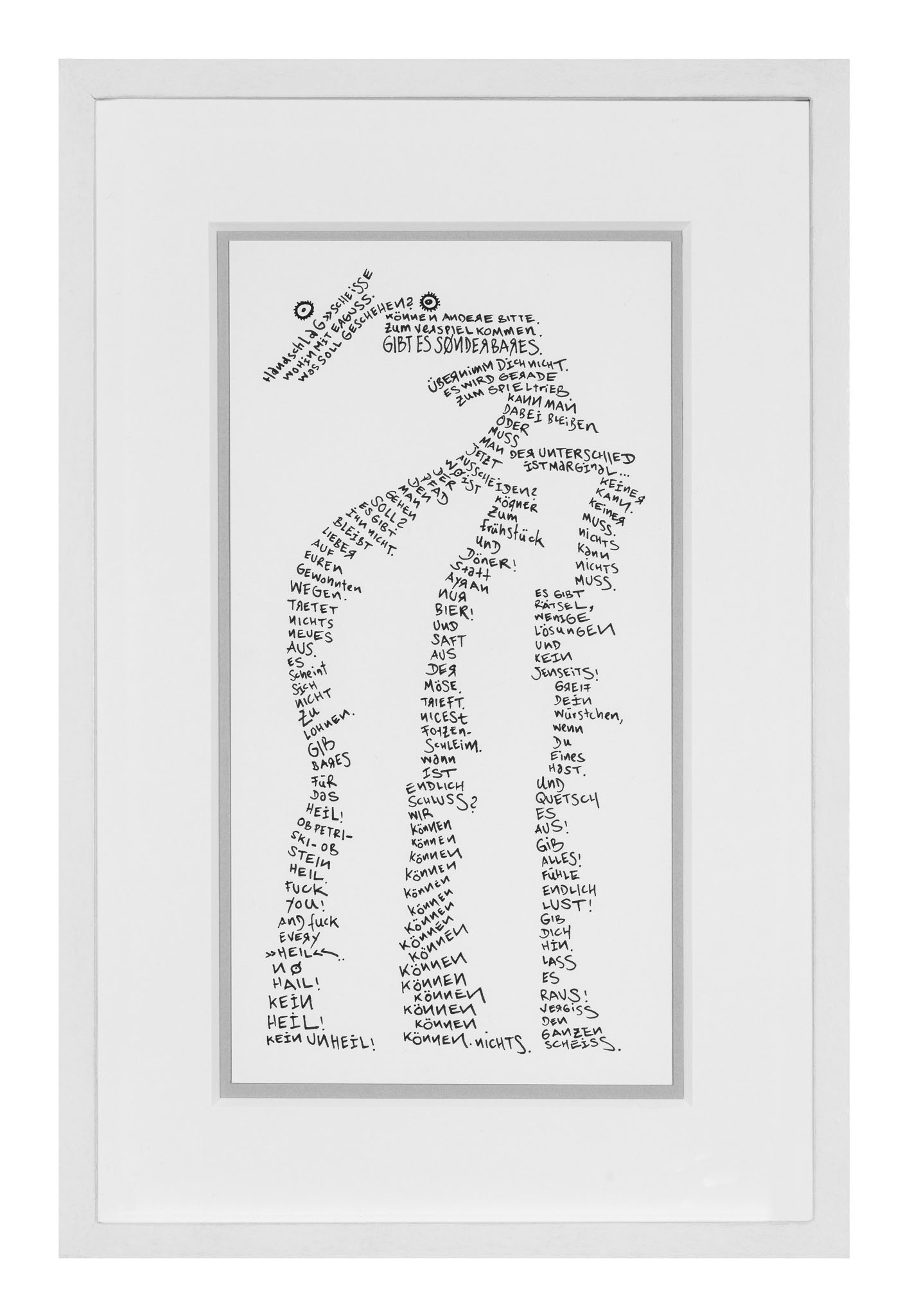 [Original drawing, pigmentmarker on invitationcard, 11 x 21 cm, passepartout, handmade frame, 20 x 30 cm, museum glass, 2018] Photo: Daniel Schvarcz // www.d-s-photo.com
